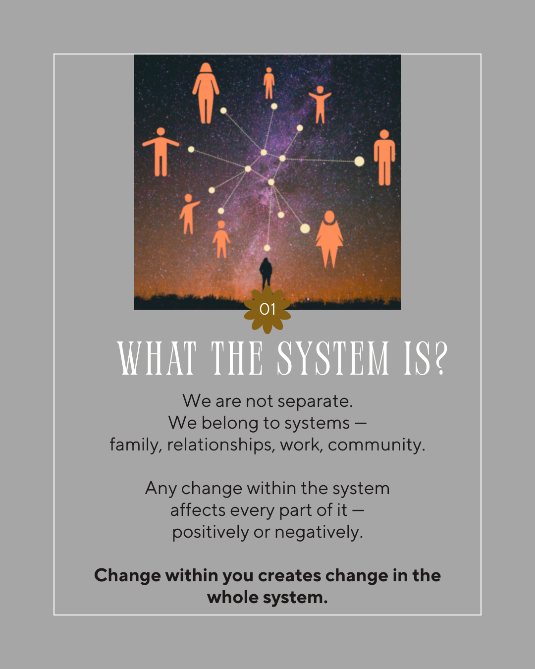 - recognize yourself as part of a system — your family, business, or community,